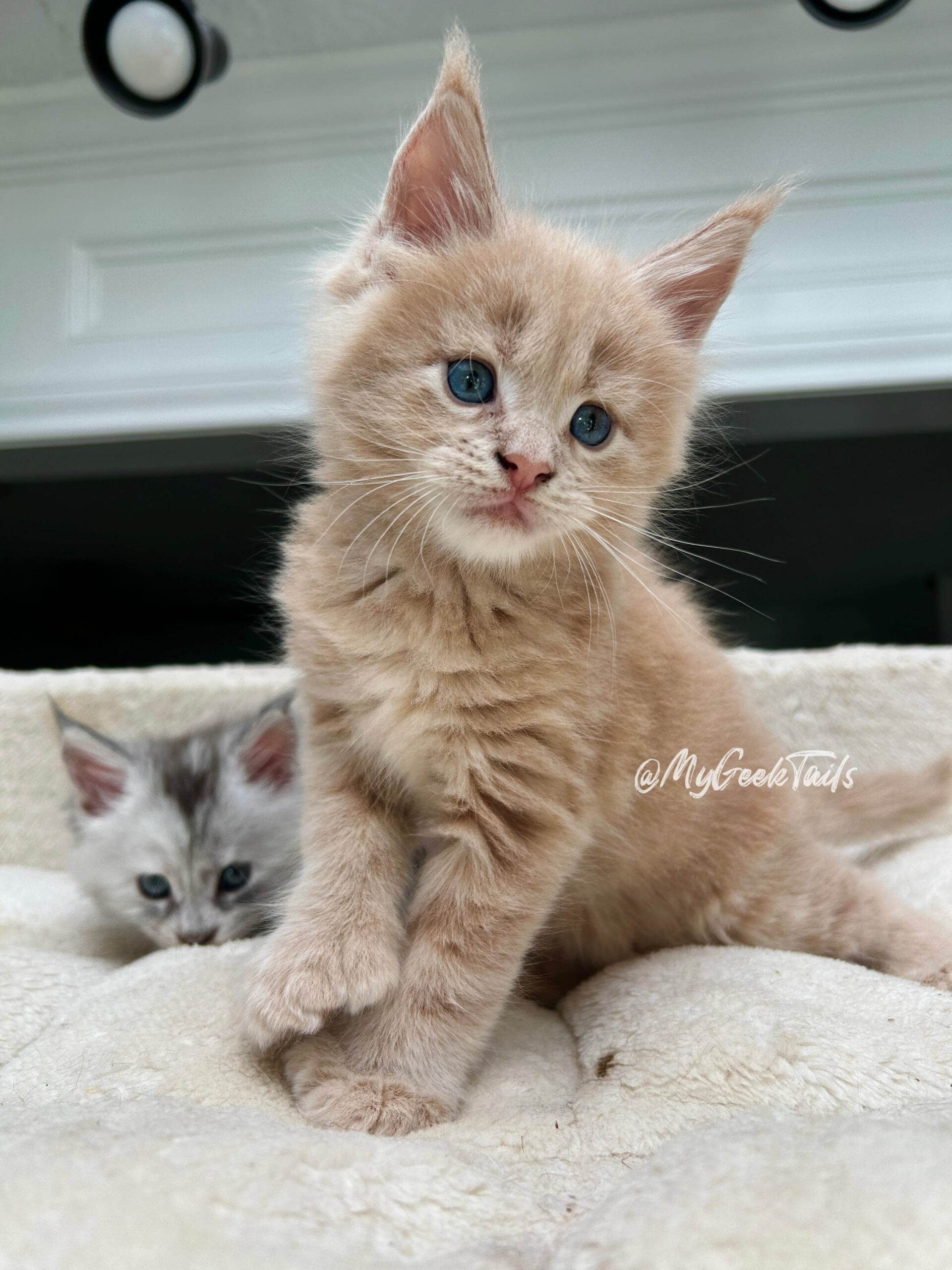 At MyGeekTails Maine Coon Cattery here in Houston, we are known for raising bold, beautiful, European-line Maine Coons with a unique Viking-themed charm. And today, we’re excited to introduce one of our sweetest new faces — Kovu, our cream Maine Coon kitten with striking blue eyes and a personality just as warm as his coat.