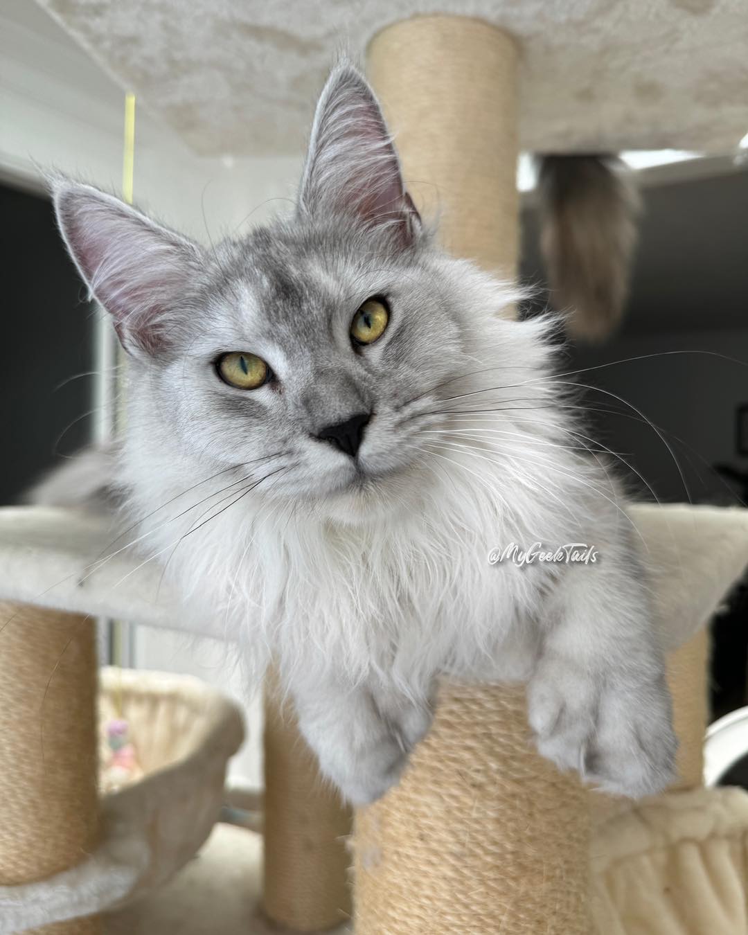 Throughout her time in our program, Pandora has helped produce beautiful, healthy kittens that carry on the strong traits we strive for at MyGeekTails. Her kittens inherit not only her striking silver coloring but also her calm and affectionate personality. These qualities are especially important for families searching for a well-socialized Maine Coon kitten.